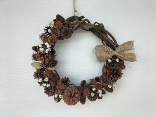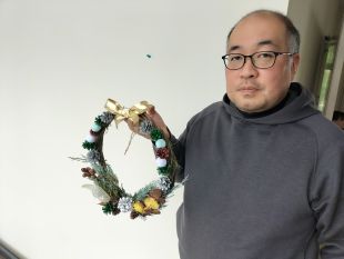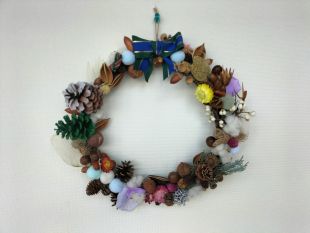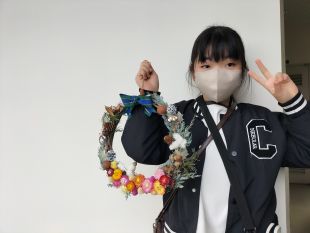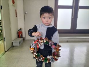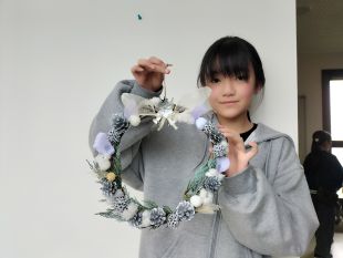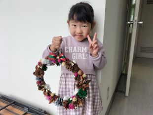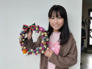 クリスマスリース作りが開催されました。個性的でステキなリースが8個完成しています。