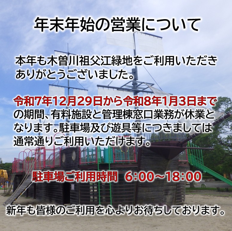 - 10月25日に開催を予定していました「遊具の正しい遊び方講習」は雨天が予想されるため11月1日(土)に延期となりました。